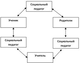 Наряду с конференциями, групповыми встречами с родителями проводятся еженедельные консультации. Как правило, вопросами родителей являются: дерзость родителям, в некоторых случаях даже их игнорирование; как наладить учебу, как уберечь ребенка от влияния плохой компании. Учащихся интересуют вопросы взаимоотношений с родителями, обстановка в семье (ссоры с родителями и родителей между собой, непонимание), отношения с учителями, социально-правовые вопросы. Педагоги обращаются за помощью в работе с трудными детьми, разрешения конфликтных ситуаций с родителями. В итоге сложился тандем: ученик – родитель – учитель – социальный педагог, где ключевой фигурой является социальный педагог, осуществляющий связь между учеником и родителем, учеником и учителем, учителем и родителем: